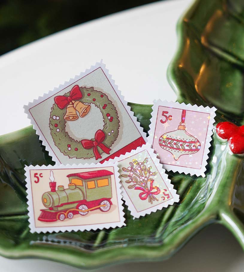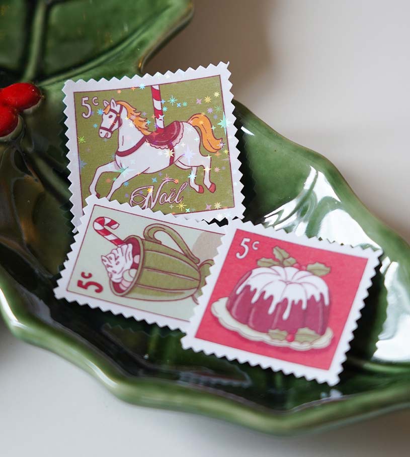 - Pack de 7 stickers timbres sur le thème de Noël Vintage.