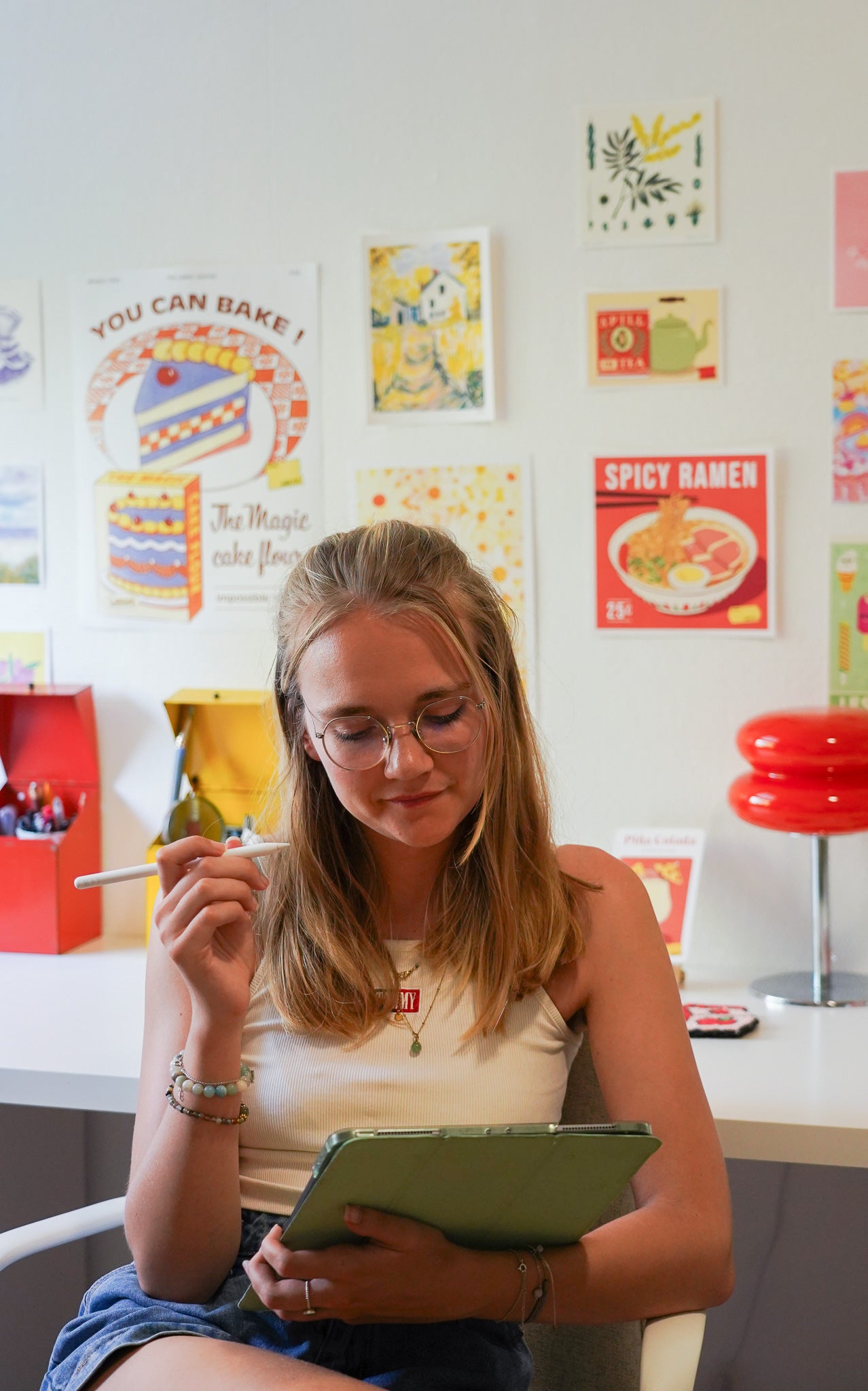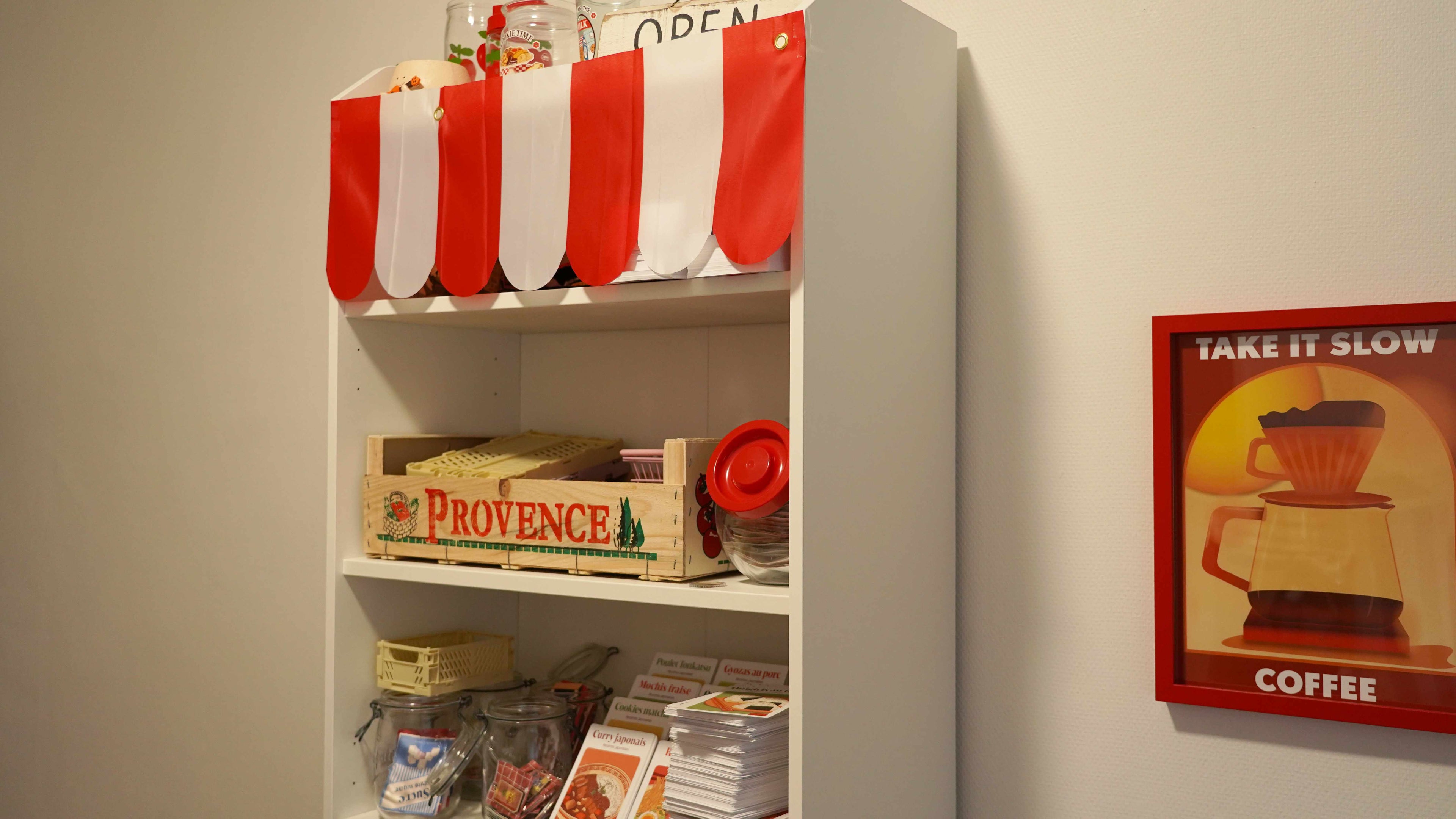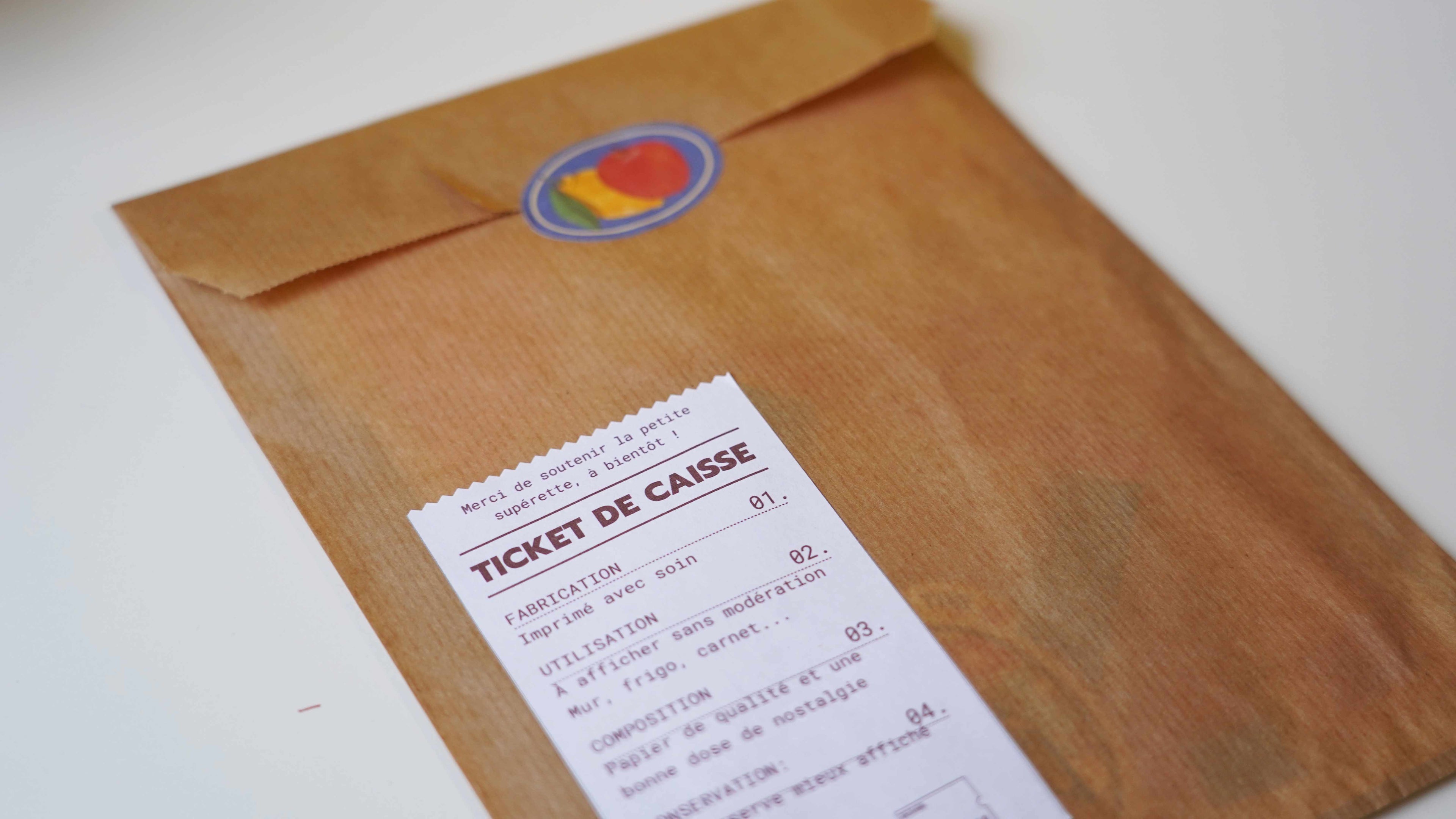 Derrière les rayons se cache mon atelier, où je crée tout de A à Z. Pratiquement tous mes produits sont réalisés et imprimés chez moi, ou parfois produits en Europe à petite échelle. Chaque commande est ensuite emballée à la main avec attention, comme si vous veniez d’acheter dans une petite supérette du coin, avec son sachet kraft et son ticket de caisse.